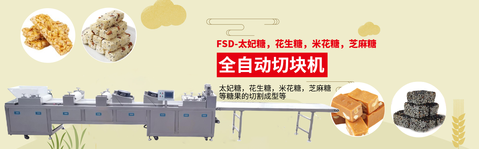 近年來(lái)研制開發(fā)(fā)沙琪瑪、雪花酥、米花糖、花生酥等休閑食品機(jī)械專業(yè)(yè)生產(chǎn)廠家